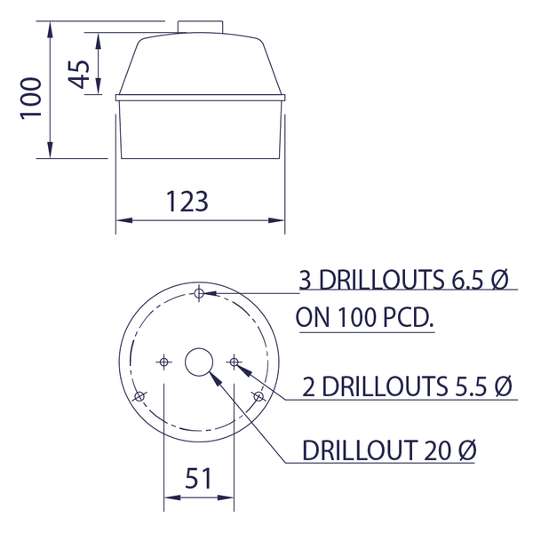 | Size (mm) | 100mm x 123mm dia. |