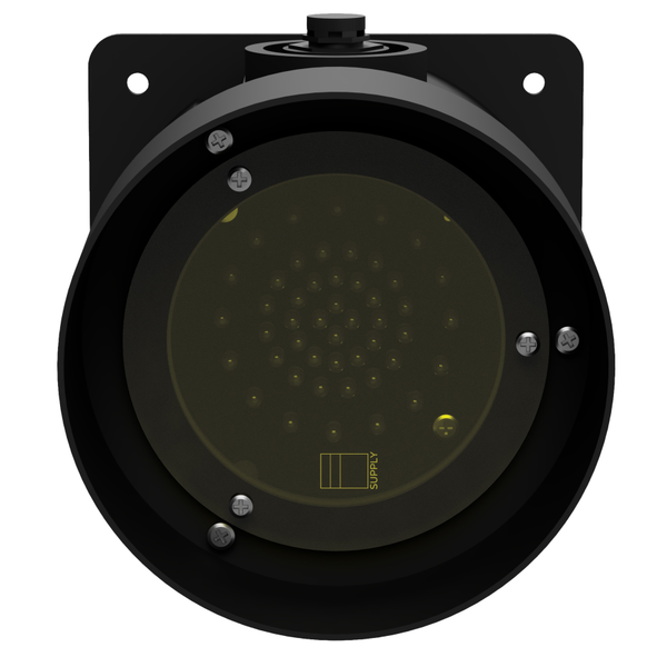 The Pulsed LED uni-directional beacon can be linked with other units to create a traffic light-style indicator. It features a durable black polycarbonate base and hood, with a simple yellow polycarbonate lens. The operation can be set to static or flashing using an internal jumper. The clear-package LEDs prevent the indicator from appearing “ON” when exposed to direct sunlight. The hood assembly is securely attached to the base with a gasket and three screws.