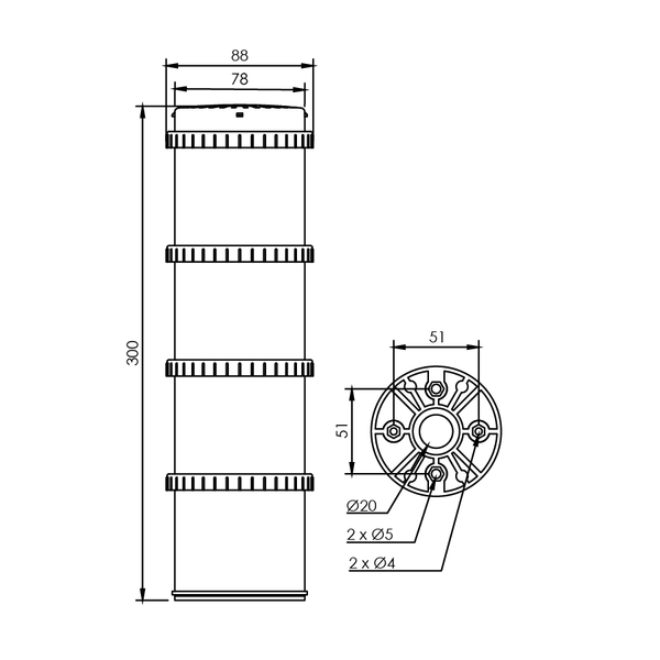 | Size (mm) | 300mm x 78mm dia. |