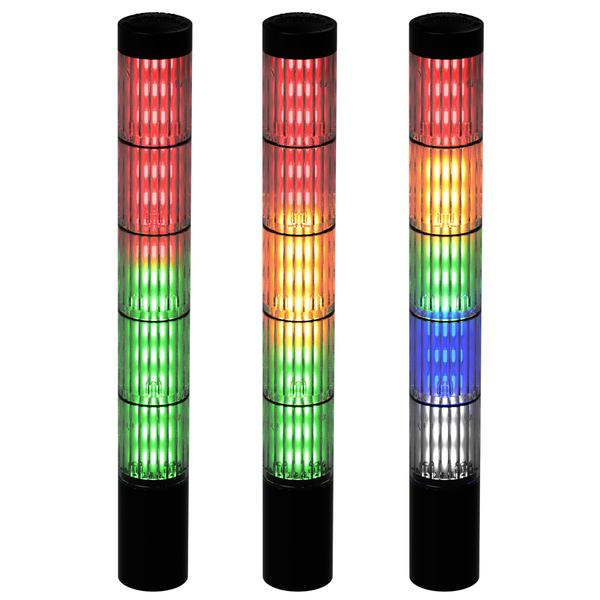 The STC/AUTOSIGNAL is a compact, IP65 rated micro signaling tower with a 32mm diameter. Designed for multi-status signaling, it features integrated high-brightness RGB LEDs that ensure optimal visibility, displaying all active signals simultaneously across the full tower. The STC/AUTOSIGNAL includes individual segments in Red, Amber, Green, Blue, and Clear. Rather than leaving inactive signal spaces, the light output automatically adjusts to fill the tower with the active colors, ensuring maximum visibility at all times. Made entirely of polycarbonate with a clear lens, this micro tower provides versatile signaling in a minimal size, making it ideal for factory automation, visual indicators, and machinery applications.