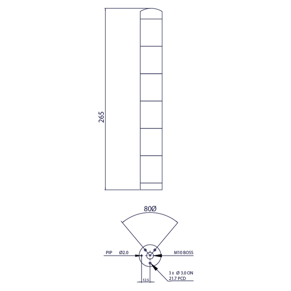 deegee STC IP65 LED Stack Light 24Vdc Black Base 265mm x 32mm dia. Red/Amber/Green/Blue/White